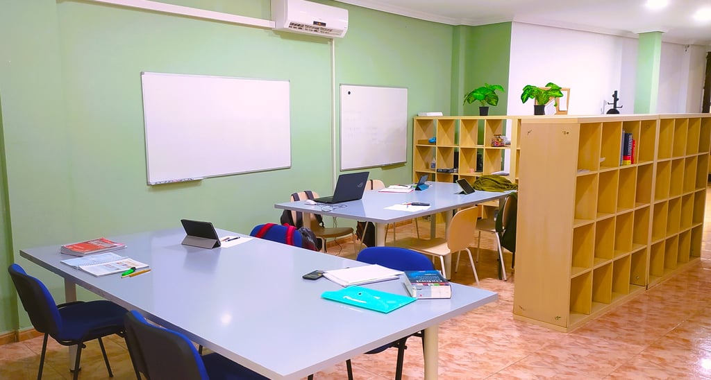 Nuestra sala de pedagogía está diseñada para sesiones personalizadas, ofreciendo un espacio acogedor para el desarrollo integral de cada estudiante. Además, nuestra amplia zona de estudio, fomenta la colaboración y el enfoque en un entorno tranquilo.